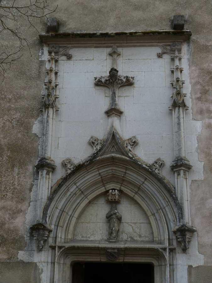 Au-dessus de la porte, sous la statue de saint Jean-Baptiste, on ne peut pas ignorer les armes des Montchabod ( s'il on en croit la descrition donnée par de Foras, les repeints que l'on voit ne respectent pas les couleurs de son écu)