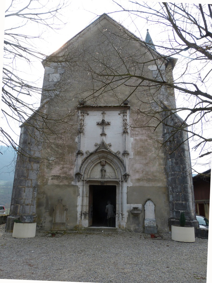 Au-dessus de la porte, sous la statue de saint Jean-Baptiste, on ne peut pas ignorer les armes des Montchabod ( s'il on en croit la descrition donnée par de Foras, les repeints que l'on voit ne respectent pas les couleurs de son écu)
