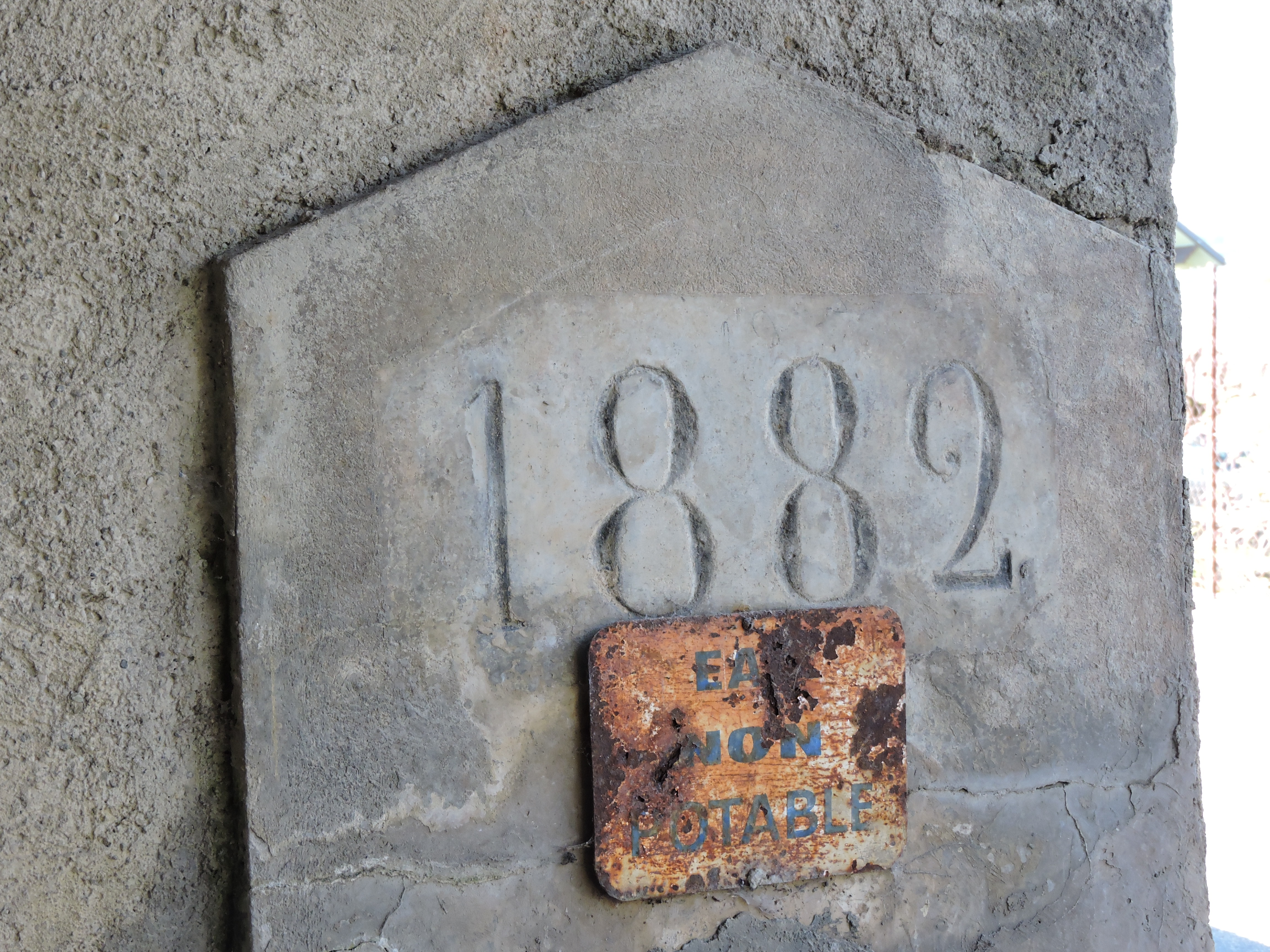 La date 1882 figure au-dessus de la fontaine du bassin-lavoir actuel de La Terre Sainte.