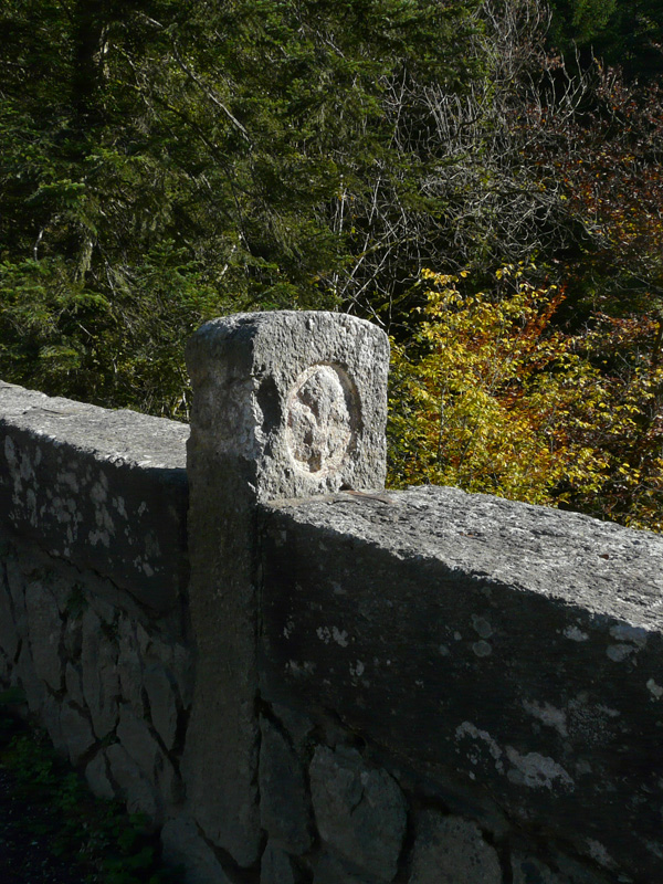 Entre Arvillard et l'ancien Monastère Saint-Hugon, près de la Correrie, un vieux pont enjambe le torrent du Bens (alt 644m) : c'est le Pont du Diable bien sûr ! Sur le parapet sud, au milieu, une borne marque la frontière : elle est sculptée côté ouest d'une fleur de lys (pour le Dauphiné), et côté est d'une croix (de Savoie)