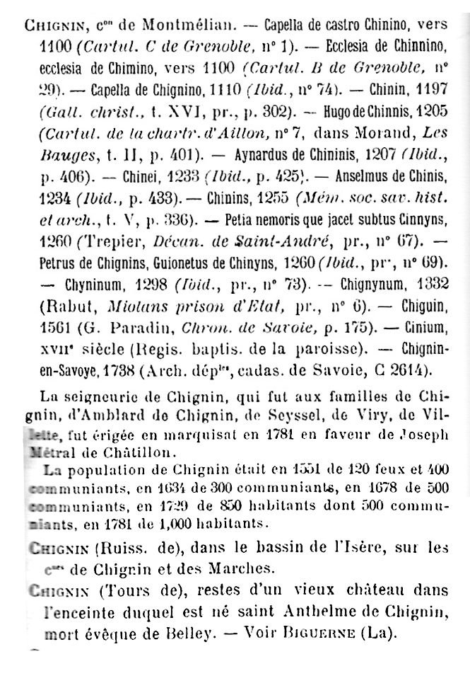 Dictionnaire topographique du Département de la Savoie de J.J. Vernier (Chambéry 1897)