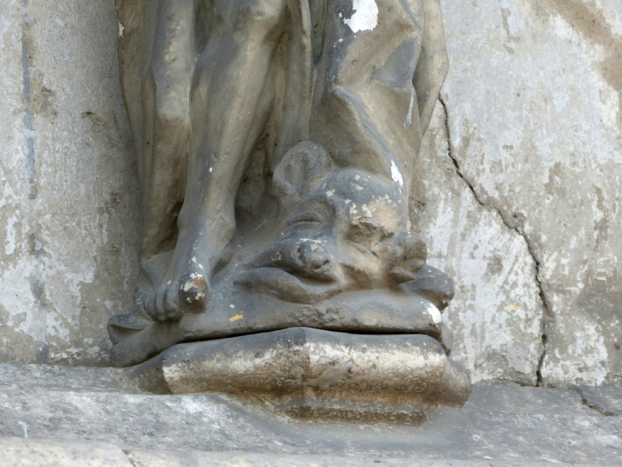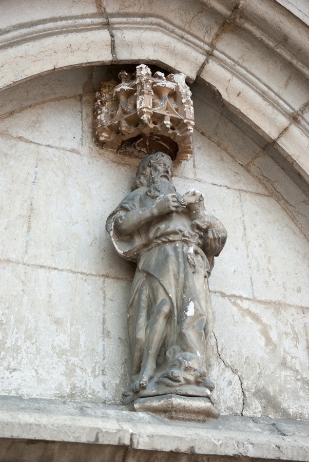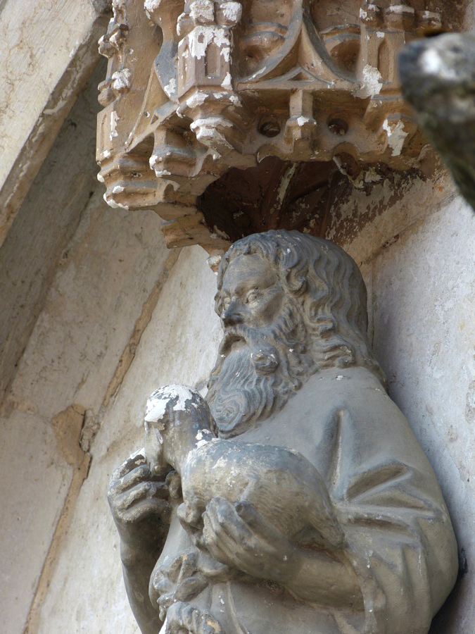La statue du Bon Pasteur (Saint Jean-Baptiste) au tympan de l'église de Saint-Jean-Pied-Gauthier