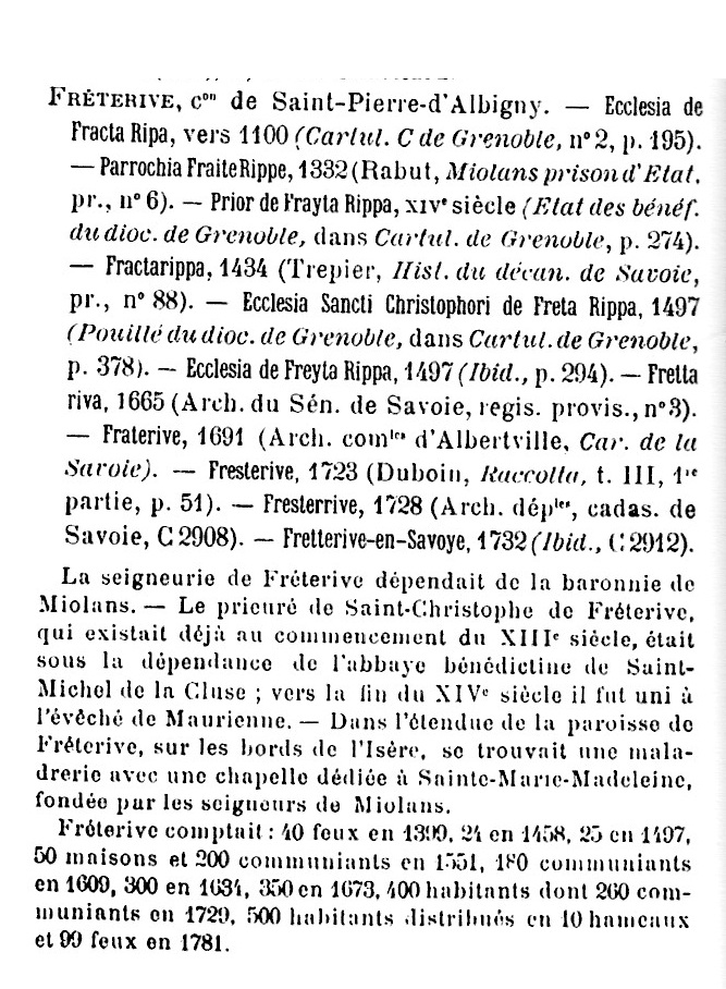 Dictionnaire topographique du Département de la Savoie de J.J. Vernier (Chambéry 1897)