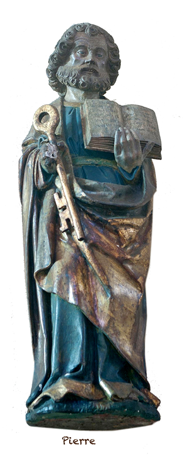 Ce n'est pas toujours facile : Pierre a bien conservé sa clé, et André sa croix, mais d'autres ont perdu leur main … et leur attribut (souvent, l'instrument de leur supplice); ou bien, le bâton, le gourdin, l'épée, etc, peuvent caractériser plusieurs suppliciés ; aussi, les dénominations hésitent et varient, appuyées sur l'observation de détails moins sûrs.