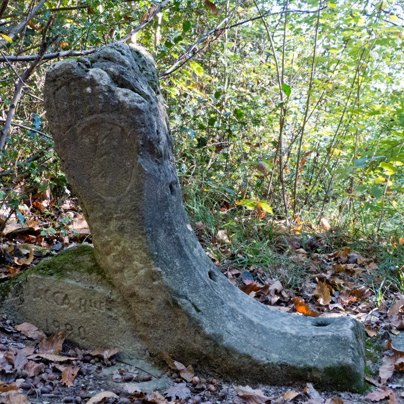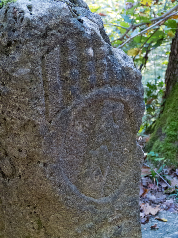 Sur le chemin de crête des tours de Montmayeur au Col de Cochette en passant par la chapelle St-Michel, à la limite entre Hautevielle, La Trinité, et Villard-d'Héry, on voit une pierre curieuse, cintrée : elle porte en creux la marque probable du logement de barreaux, et sur les faces extérieures, des sculptures, frustres, dont une croix de Savoie.
