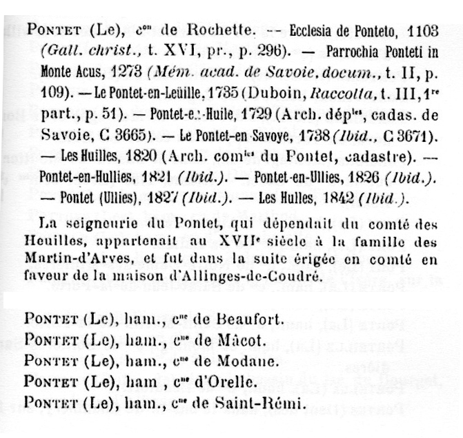 Dictionnaire topographique du Département de la Savoie de J.J. Vernier (Chambéry 1897)