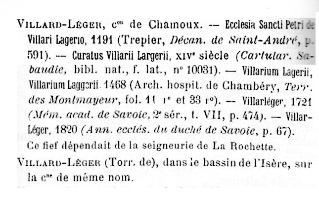 Dictionnaire topographique du Département de la Savoie de J.J. Vernier (Chambéry 1897)